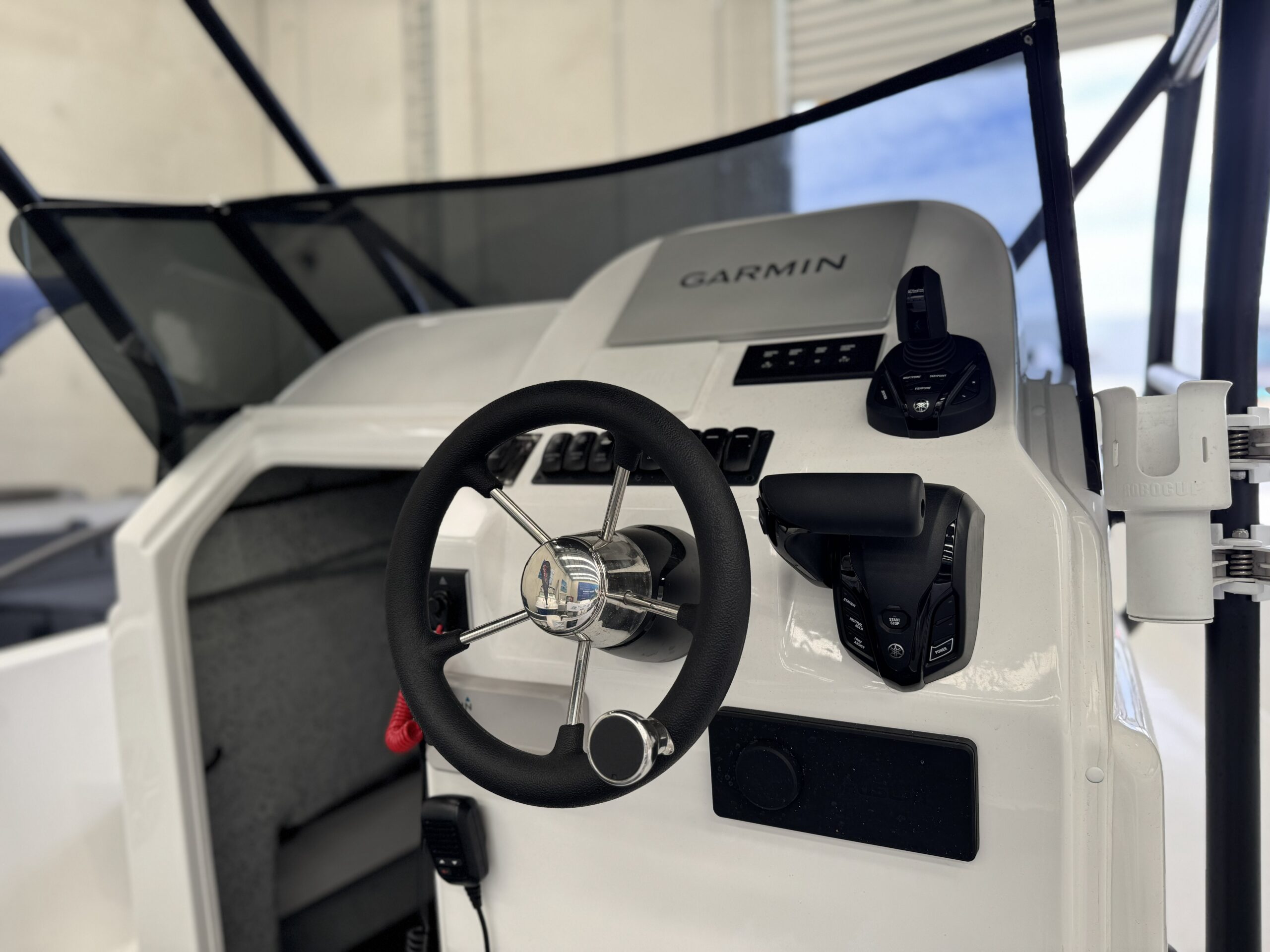 Rigging: Helm master joystick control, Yamaha Autopilot, CL5 Gauge, Binnacle mount throttle, Yamaha Saltwater II Polished SDS Propellor.